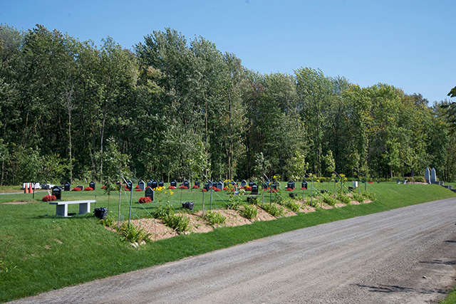 Cette belle section complètement aménagée occupe une très grande superficie et offre des lieux de sépulture respectueux et significatifs pour la communauté.