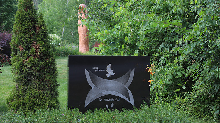 Selon l’entente intervenue avec le comité en deuil périnatal de l’HMR, le Cimetière Laval a offert et aménagé le nouveau site et un monument dédié où sont inscrits les prénoms des bébés décédés.